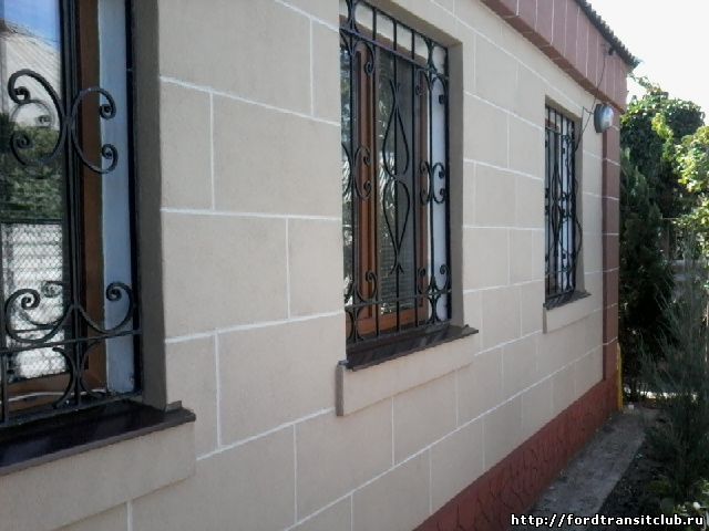 | Ну вот дом закончили, покрыли сверху фасадным лаком, осталось доделать веранду, но то уже на весну отложили - итак всё лето убили! Вокруг окон сделал окантовку из мозаичного песка таког-же как на угловых панелях и цоколе. Блин, что только не сделаешь на трезву голову!!! Вот так выглядит работа в оконцовке