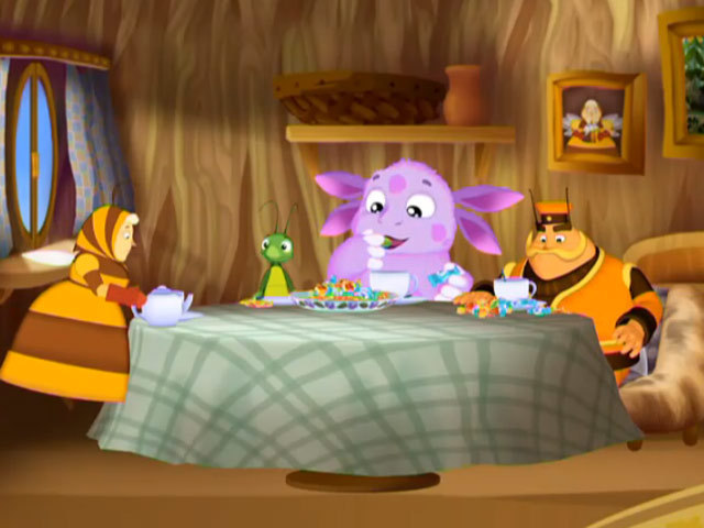 Баба Капа попросила Лунтика вытащить суп из печки, а Кузю убрать грязную посуду со стола. Но ребята взялись за все домашние дела сразу.