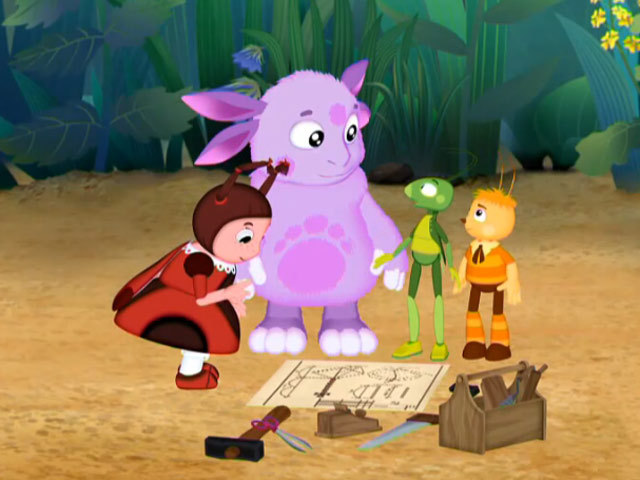 Дядя Корней дал друзьям чертеж воздушного змея. Лунтик и ребята начали делать новою игрушку, но не сразу усвоили золотое правило — семь раз отмерь — один отрежь.