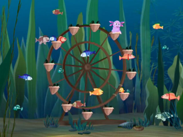 Лунтик и Пескарь Иваныч делают для плавунцов карусель.