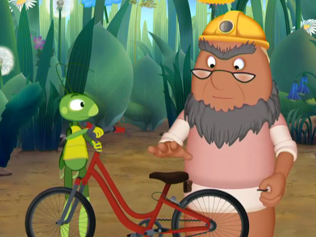 Кузя хочет научиться кататься на велосипеде. Друзья помогут кузнечику!