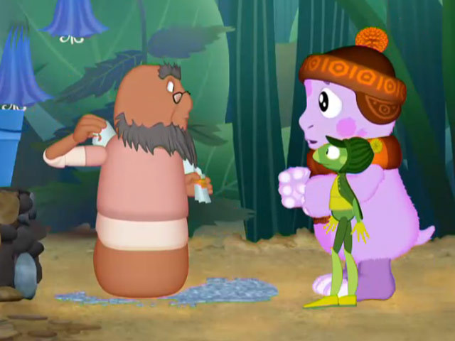 Лунтик, Кузя и Корней Корнеевич закаляются.