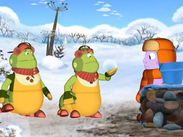 Однажды зимой Лунтик отправился гулять. Баба Капа напоминает ему, что на морозе нельзя есть ничего холодного. Каково удивление Лунтика, когда он видит, что гусеницы преспокойно едят снежки! Он спешит предостеречь их, но гусеницам запреты взрослых кажутся смешными и нелепыми. Демонстрируя свою удаль, они начинают кусать и лизать все подряд – и примерзают языками к ведру…