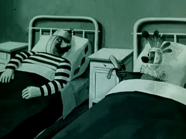 Попугай стремится проникнуть в больницу, куда попал его друг Боцман.Режиссер: М. Каменецкий.