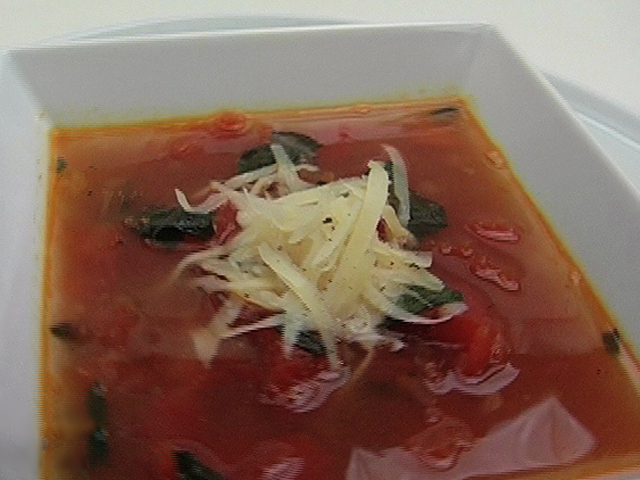 Томатный суп и базиликом.Состав:томаты — 500 гр;овощной бульон — 400 гр;лук — 1/2 штуки;чеснок — 1 зубчик;красное вино — 100 гр;базилик — 2 столовых ложки;сахар — 1 столовая ложка;сыр — 50 гр;масло, соль, перец — по вкусу.